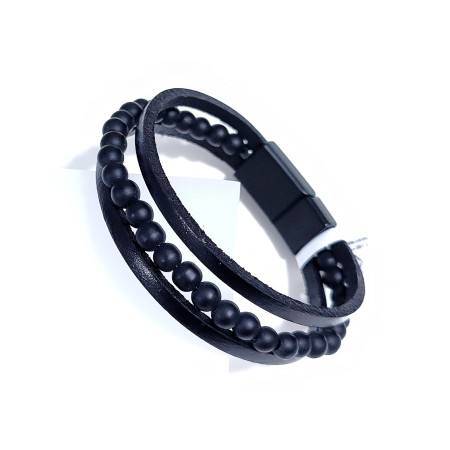 Ανδρικά βραχιόλια CHRYSOSTOMOS πολύσειρο δερμάτινο δεμένο με ημιπολύτιμες πέτρες μαγνητικό κούμπωμα Ελληνικής κατασκευής.