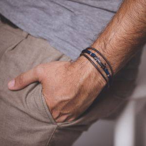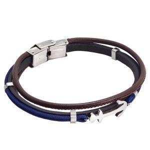 Ανδρικό βραχιόλι με άγκυρα από ανοξείδωτο ατσάλι και δερμάτινο κορδόνι σε μπλέ και καφέ χρωματισμούς της εταιρείας Boccadamo.