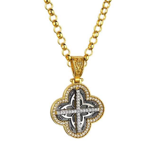 Αργυρός σταυρός 925 με ντουμπλέ επιχρύσωμα κ24 και πέτρες ζιργκόν