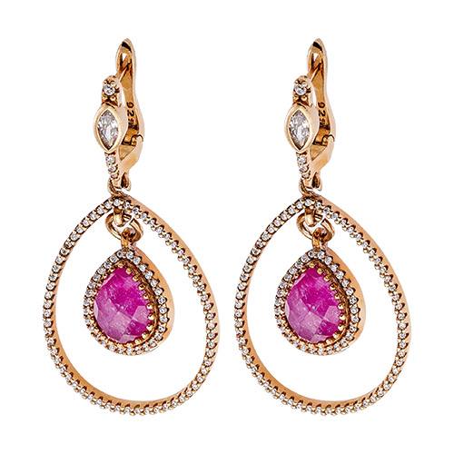 Αργυρό σκουλαρίκι 925 ροζ χρυσό και ημιπολύτιμη πέτρα 8×10 mm