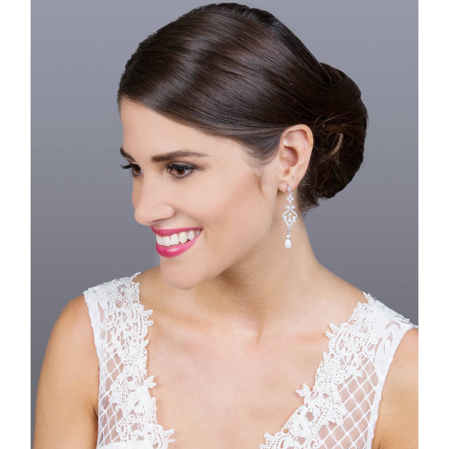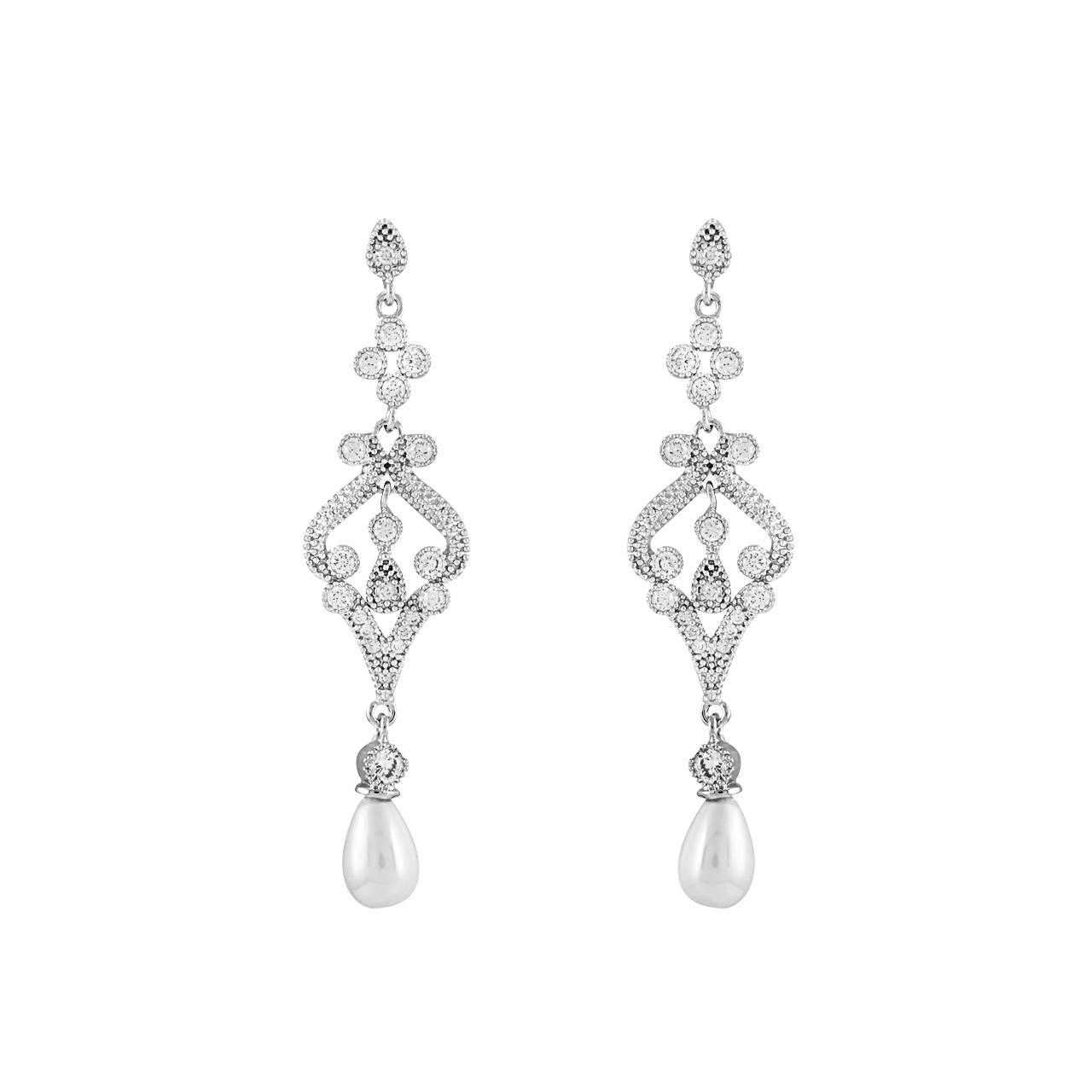 Νυφικά σκουλαρίκια Gloria Hope ασημί με λευκό ζιργκόν. Το ιδανικό αξεσουάρ για τη νύφη.