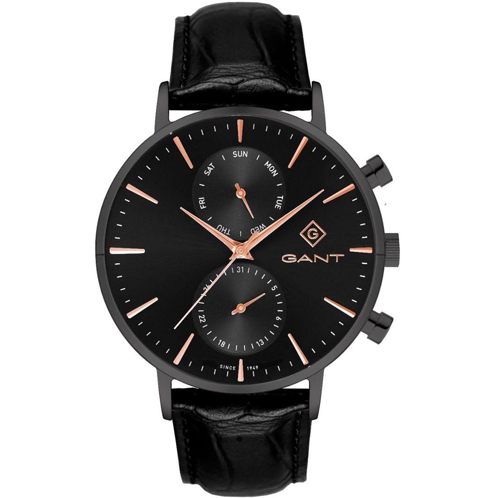 Η Gant δημιούργησε ένα μοντέρνο ανδρικό ρολόι. Για την κάσα του χρησιμοποιήθηκε ανοξείδωτο ατσάλι σε μαύρο χρώμα, ενώ το καντράν είναι ανάγλυφο βαμμένο σε μαύρο χρώμα, με ροζ χρυσούς δείκτες και σημεία. Για το πιάσιμο του ρολογιού, η Gant διάλεξε λουράκι από δέρμα υψηλής ποιότητας, σε καφέ χρώμα. Συνοδεύεται από συσκευασία Gant και γραπτή εγγύηση 2 ετών της επίσημης αντιπροσωπείας της Gant.