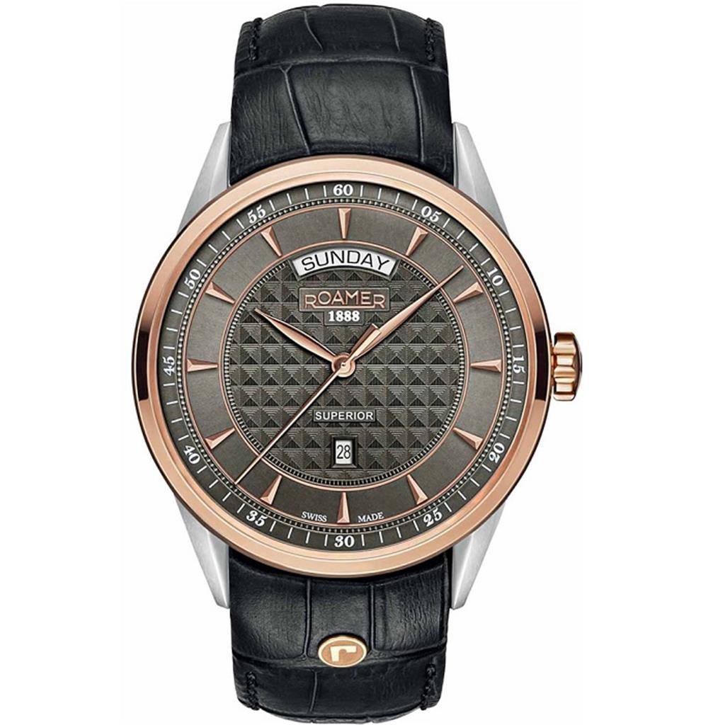 Ανθρακί με ροζ χρυσά στοιχεία. |