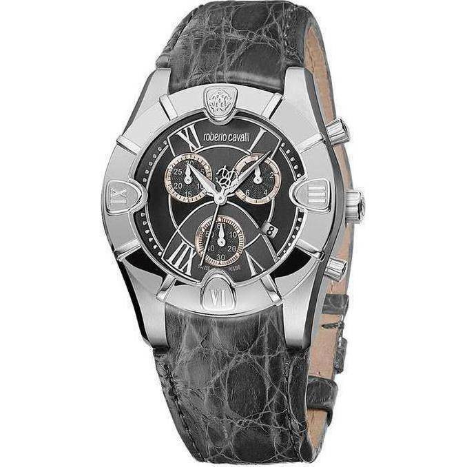 Ανδρικό ρολόι ελβετικής κατασκευής ROBERTO CAVALLI της συλλογής Diamond με κάσα απο ανοξείδωτο ατσάλι,γκρι καντράν,κρύσταλλο Ζαφειριού και γκρι δερμάτινο Crocodile λουράκι.Διαθέτει λειτουργία χρονογράφου και ένδειξη ημερομηνίας.