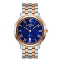 Κάσα από ανοξείδωτο ατσάλι, επίστρωση σε ασημί και ροζ χρυσό, γυαλισμένο / ματ Λουράκι από ανοξείδωτο ατσάλι, επίστρωση σε ασημί και ροζ χρυσό, γυαλισμένο / ματ, πτυσσόμενο κούμπωμα Ζαφείρι Γυαλί Κίνηση χαλαζία, λειτουργία μπαταρίας Εμφάνιση ημερομηνίας 5 ATM Αδιάβροχο Χρώμα καντράν μπλε Πλάτος θήκης περίπου. 40 χλστ Ύψος θήκης περίπου 7 mm Συνοδεύεται από βιβλιάριο και κουτί.