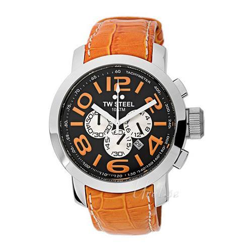 Εντυπωσιακός χρονογράφος TW STEEL φορεμένο σε πορτοκαλί δερμάτινο λουράκι αδιάβροχος στα 100μ