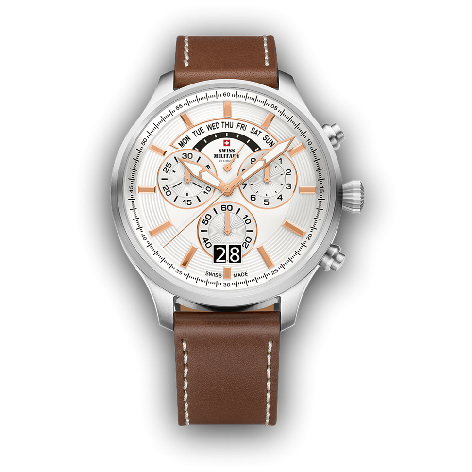 Swiss chronograph SWISS MILITARY with distinct date and brown strap
