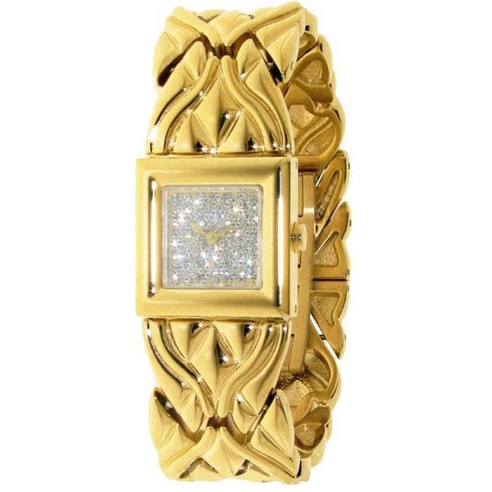 Ρολόι γυναικείο Roberto Cavalli R7253124517 με περίτεχνο μπρασελέ σε κίτρινο χρυσό χρώμα.
