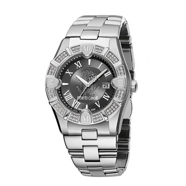Impressive watch in steel, with crystals around the case from the DIAMOND series of ROBERTO CAVALLI swiss made.