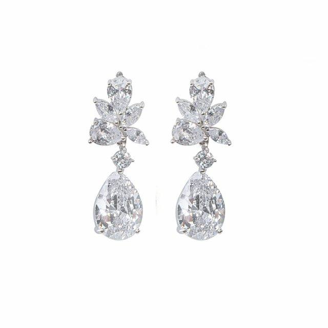 Σκουλαρίκια Gloria Hope ασημί με λευκό ζιργκόν. Το ιδανικό αξεσουάρ για τη νύφη.