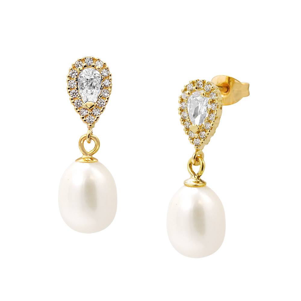 Σκουλαρίκια με μαργαριτάρια Fresh Water Pearl 8,0×10,0mm Κ14