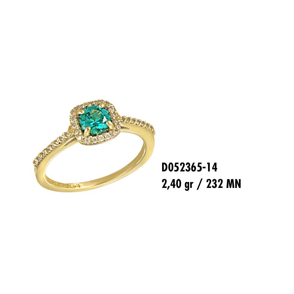 Υπέροχο χρυσό δακτυλίδι Κ14 με γαλαζοπράσινη πέτρα