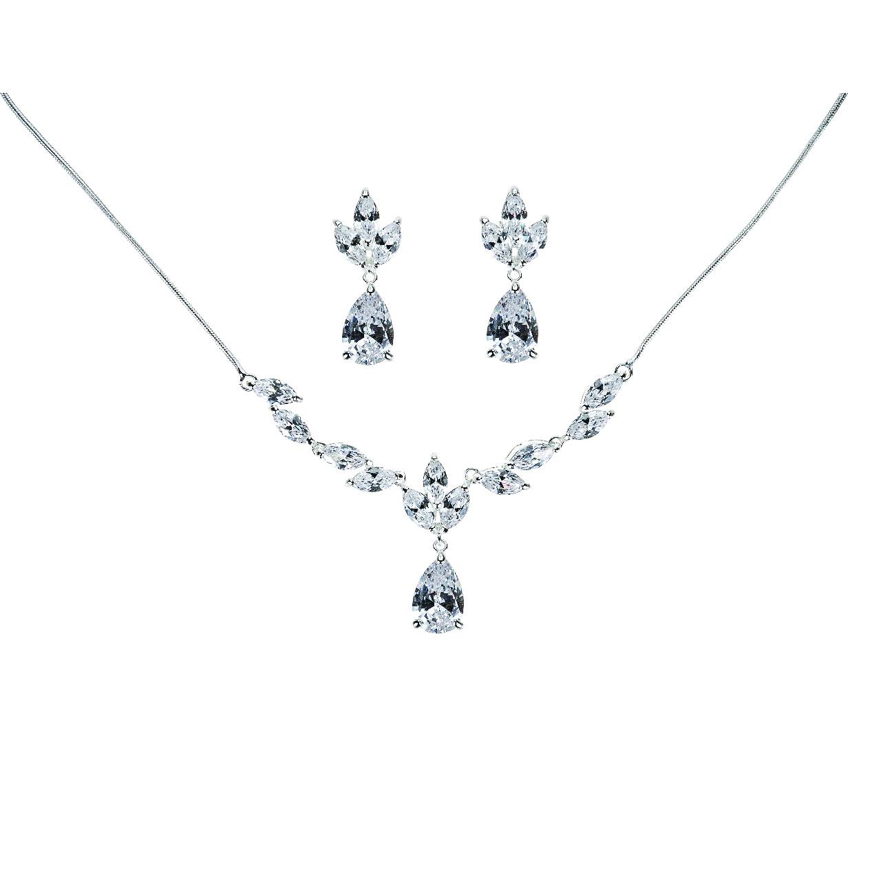 Σετ κολιέ και σκουλαρίκια Gloria Hope ασημί με λευκό ζιργκόν. Το ιδανικό αξεσουάρ για τη νύφη.