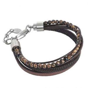 Βραχιόλι ανδρικό με δέρμα σε καφέ απόχρωση και κούμπωμα από ανοξείδωτο ατσάλι, της εταιρείας Boccadamo.