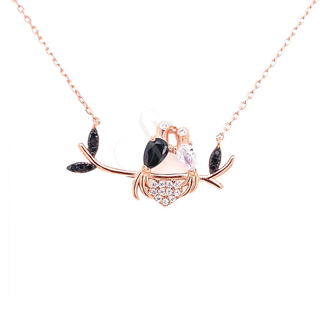 Μοντέρνο κολιέ από επιχρυσωμένο ροζ ασήμι και μαύρο σμάλτο