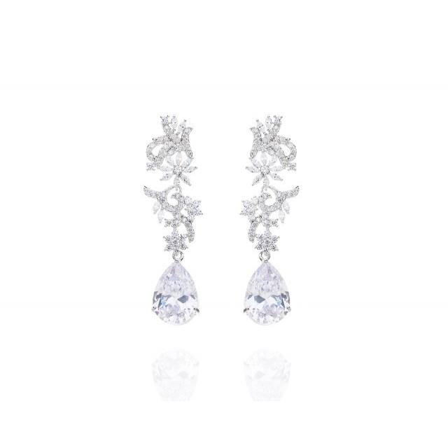 Σκουλαρίκια Gloria Hope ασημί με λευκό ζιργκόν. Το ιδανικό αξεσουάρ για τη νύφη.